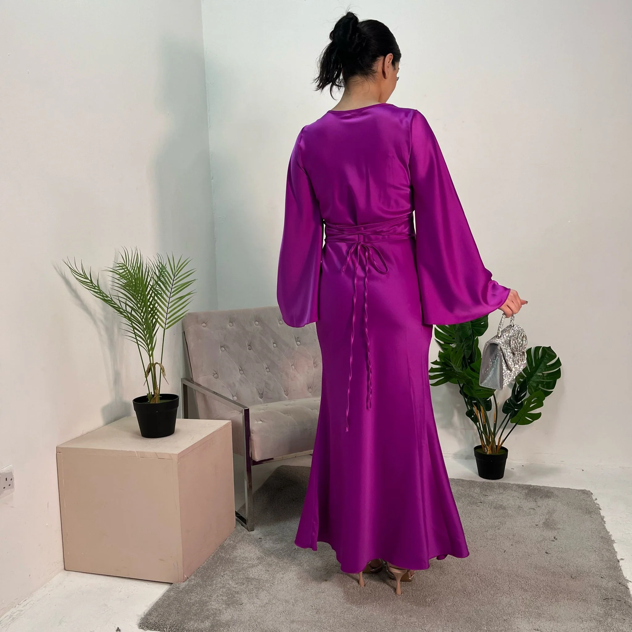 The premium tie-back design adds a touch of allure, allowing you to adjust the fit to your preference while enhancing your silhouette. Perfect for special occasions or evening events, the Aqsa dress ensures you stand out with its timeless style and impeccable quality.