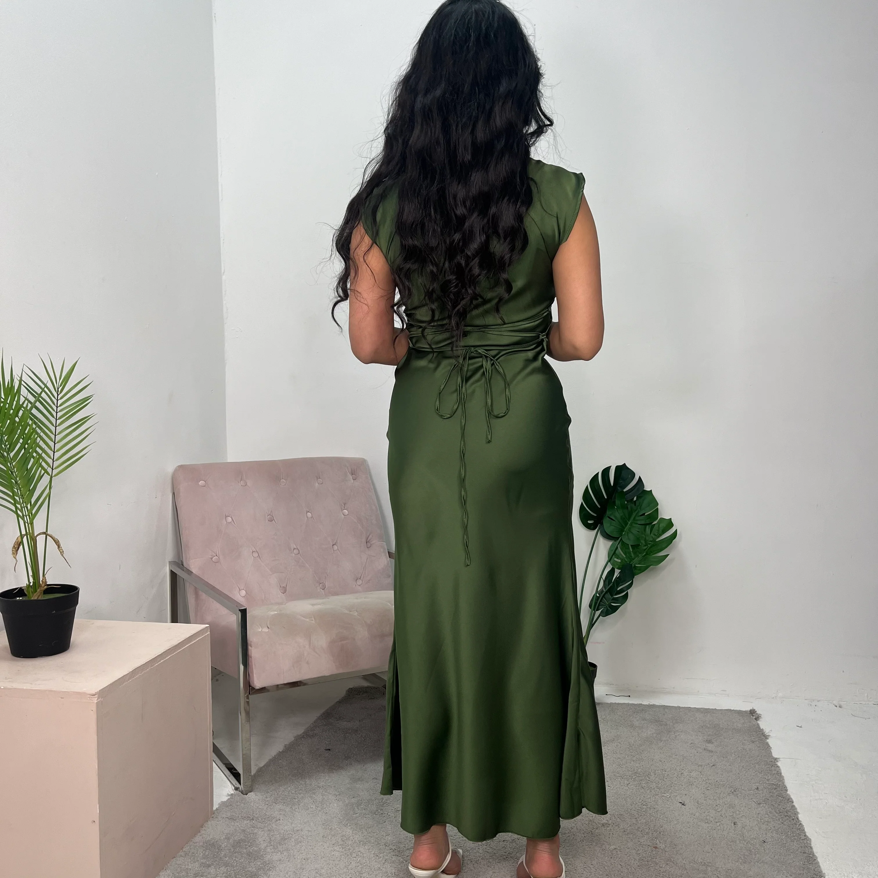 Introducing the Priya Khaki Sleeveless Tie Back Satin Dress – a sleek and stylish addition to your wardrobe. With its flattering silhouette and elegant tie-back detail, this dress is perfect for any special occasion. Crafted from luxurious satin fabric, it offers both comfort and sophistication. Elevate your look with the Priya dress today!